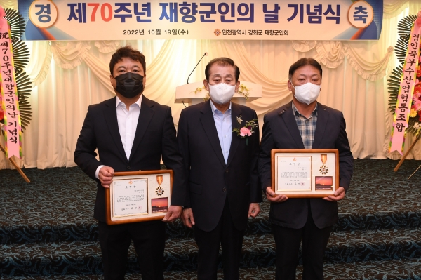 유천호 군수는 “재향군인회가 나라를 지키기 위해 젊음을 헌신하고 애향정신으로 봉사에 앞장서며 젊은이들에게 지혜를 나눠주신 덕분에 강화군이 발전해왔다”며 “재향군인의 뜻을 이어받아 군민의 생명과 재산을 최우선으로 적극 행정을 펼쳐 모두가 풍요로운 강화군을 만들겠다.