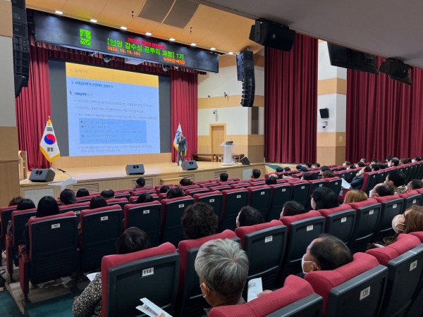 [금요저널] 수원시는 19일 시청 대강당에서 2022년 공직자 인권교육 ‘인권 감수성 공무직 과정’ 1기 교육을 진행했다.