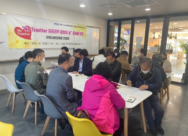 [금요저널] 파주시는 18일 ‘We Together 아프리카 문화의 날’ 추진을 위한 법원읍 지역사회단체장 간담회를 진행했다.
