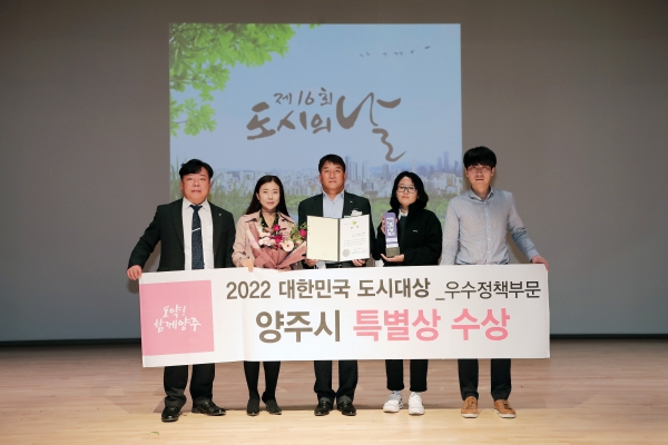 [금요저널] 양주시가 지난 18일‘2022년 대한민국 도시대상’시상식에서 우수정책 부문 우수 지자체로 선정돼 특별상인 국토연구원장상을 수상했다.