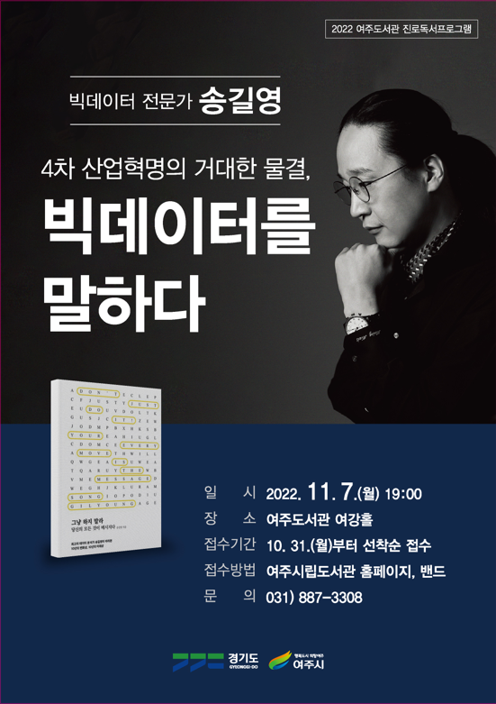 [금요저널] 여주시 평생교육과 여주도서관은 오는 11월 7일과 14일 오후 7시에 빅데이터 전문가 송길영 씨와 유품정리사 김새별 씨를 초청해 ‘2022년 공공도서관 진로독서프로그램’ 전문직업인 특강을 진행한다.