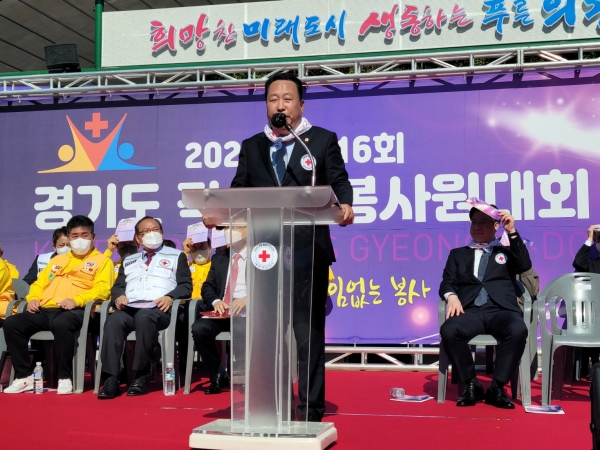 [금요저널] 경기도의회 안전행정위원회 안계일 위원장이 20일 의왕 부곡체육공원에서 진행된 ‘2022년 경기도 적십자 봉사원대회’에 참석해 봉사원들을 격려했다.