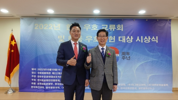 [금요저널] 경기도의회 건설교통위원회 오석규 도의원은 19일 국회의원회관에서 한·중 주요 내빈들이 참석한 가운데 양국의 미래 성장 발전을 도모하고 지속적인 공동발전을 위해 한·중우호공헌대상조직위원회 주관으로 개최된 ‘2022년 한·중 수교 30주년 기념 한중 우호 공헌 대상 시상식’에서 ‘문화’ 분야 대상을 수상하는 영예를 안았다.