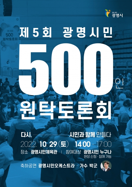 [금요저널] 광명시는 오는 29일 토요일 오후 2시부터 5시까지 광명시민체육관에서 2022년 제5회 ‘광명시민 500인 원탁토론회’를 개최한다.