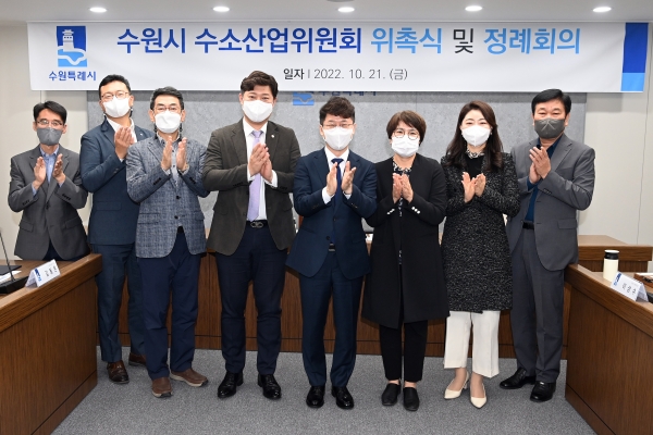 수원시는 21일 시청 상황실에서 수원시 수소산업위원회 위촉식·정례회의를 열고 위원들에게 위촉장을 수여했다.