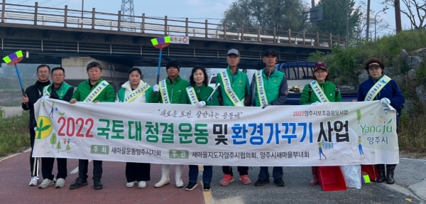 [금요저널] 양주시 회천1동 남녀 새마을지도자들은 지난 22일 휴일임에도 불구하고이른 아침부터 탄소중립 실천을 위한 국토 대 청결운동 및 마을 환경가꾸기 사업을 전개했다.