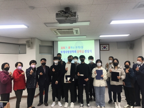[금요저널] 부평구 부개1동 부개사랑장학회는 지난 21일 동 행정복지센터 회의실에서 지역 내 저소득 고등학생 11명에게 장학금 330만원을 전달했다.
