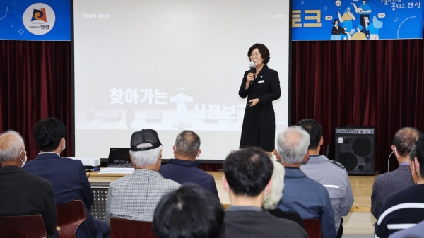 이날 서운면을 방문한 김보라 안성시장은 그동안의 시정 추진 경과와 앞으로의 비전을 설명하며 안정적 농업소득 보장, 교통인프라 확충 등에 대해 상세한 정보를 전달했다.
