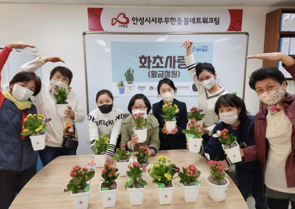 [금요저널] 안성시서부무한돌봄네트워크팀은 지난 18일 안성 중장년 행복캠퍼스 화초사랑 동아리로부터 직접 만든 화분 16개를 전달받았다고 밝혔다.