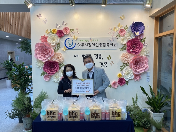 BHC치킨 양주덕정점 김용주 대표는 "지역 주민들과 함께 무언가를 나누고 싶다는 마음은 예전부터 가지고 있었지만, 생활이 바쁘다는 이유로 지금까지 미뤄두고 있었다"며 "전달받으시는 분들이 일상 속에서 이번 나눔으로 인해 잠시나마 즐거운 시간을 보내시길 바란다“고 소망을 밝혔다.