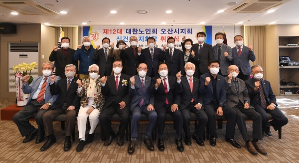 [금요저널] 오산시는 지난 21일 오산컨벤션웨딩홀에서 대한노인회 오산시지회 제10·11대 조재웅 회장의 후임으로 제12대 신건호 지회장의 취임식이 열렸다고 밝혔다.