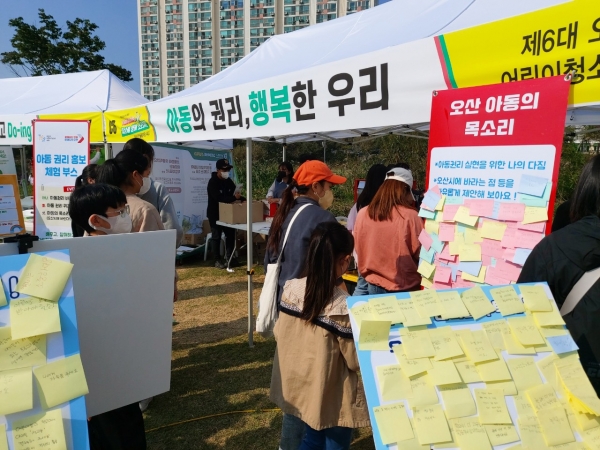 [금요저널] 오산시는 지난 22일 오산천 일원에서 아동에 대한 인식 개선과 아동 존중 확산을 위한 ‘아동 권리 홍보 체험 부스’를 운영했다.