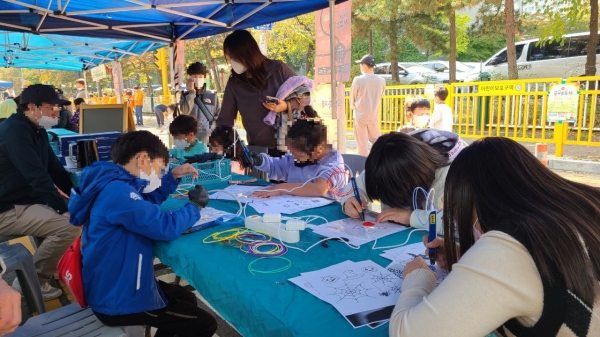 업사이클링 체험으로는 천연EM 세탁 세제 만들기 에코밴드 바구니 만들기 커피 찌꺼기를 활용한 커피 팝업 사이클링 백양초 3D 펜 공예 등 15여 개로 구성됐다.