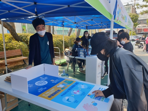 아울러 환경부 투명페트병 별도 분리배출제 집중 홍보를 위해 투명페트병과 일반플라스틱 분리배출 체험은 물론 페트병 뚜껑치기 이벤트를 진행해 시민들의 큰 호응을 얻었으며 투명페트병을 별도 분리 배출하면 옷, 신발, 가방 등을 만들 수 있는 고품질 자원으로 재활용된다는 제도의 중요성에 대해 적극 홍보했다.