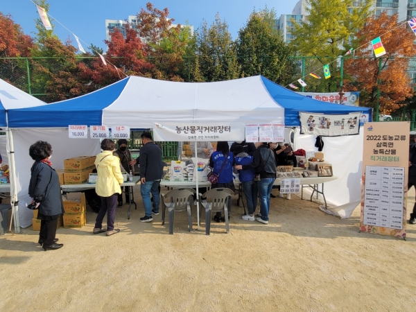 이번 ‘도농교류 농산물 직거래 장터’는 ‘2022년 염창동 주민 한마음 축제’가 열린 서울 강서구 염경중학교 운동장에서 개설돼 축제장을 방문한 염창동 주민들을 대상으로 삼죽쌀, 고구마, 고춧가루, 송화버섯 등을 판매했다.