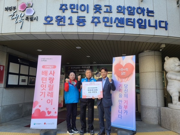 [금요저널] 의정부시 호원1동은 10월 13일부터 시작된 범시민 이웃사랑 나눔 운동인 100일간 사랑릴레이 배턴 잇기 운동이 관내 주민 및 단체들의 뜨거운 호응을 얻고 있다고 밝혔다.