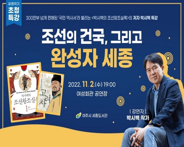 이번 특강에서 그는 ‘조선의 건국 그리고 완성자 세종’을 주제로 고려말 혼란기에서 조선이 건국되는 과정과 함께 왕자의 난 등 정치적 혼란을 거쳐 마침내 세종에 의해 조선사에서 가장 찬란한 시대가 열리는 흥미진진한 역사 이야기를 들려줄 예정이다.