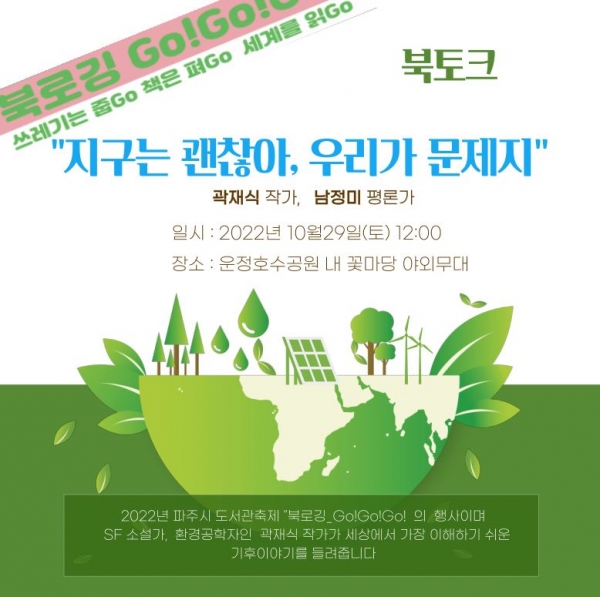 북토크는 ‘지구는 괜찮아, 우리가 문제지’의 곽재식 작가와 남정미 평론가가 기후에 대한 이야기를 들려줄 예정이다.