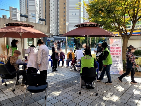 9월 27일 3차 찾아가는 보건복지상담부스 운영 활동도 보건소 동부보건과와 양지마을민락LH8단지아파트를 방문해 협업 진행한 바 있다.