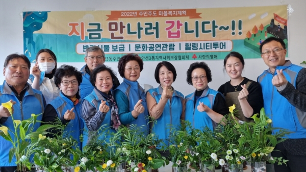 [금요저널] 안성시 안성3동지역사회보장협의체는 2022년 주민주도 마을복지계획 지원사업의 일환으로 지난 25일 관내 독거어르신 20명에게 반려식물을 전달했다.