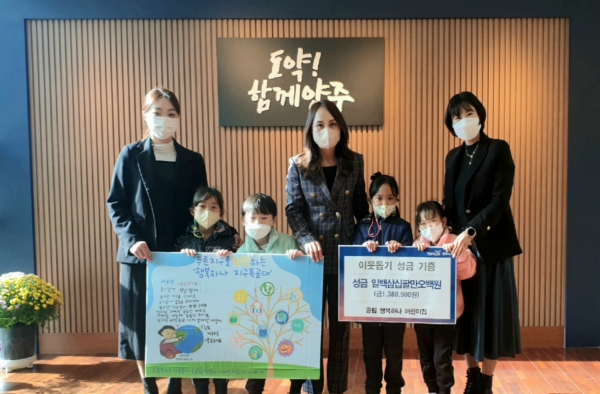 기부금은 원생 및 학부모와 함께 탄소중립, 친환경, 재사용, 재활용 등 생활에 밀접한 환경 보호를 실천하면서 아나바다 행사를 통해 마련한 수익금으로 어려운 이웃을 위해 사용될 예정이다.