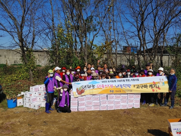 [금요저널] 지난 10월 25일 대화동 주민자치회는 이웃사랑 나눔 텃밭에서 고구마를 수확해 취약계층 50가구에 전달하는 나눔 행사를 가졌다.