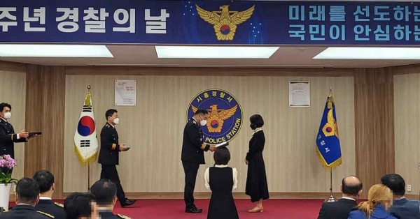 [금요저널] ‘시흥시 가정폭력·성폭력 통합상담소’는 제77주년 경찰의 날을 맞아, 지난 21일 여성폭력 피해자 지원의 공로를 인정받아 경기도남부경찰청장 감사장을 수상했다.