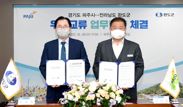 [금요저널] 파주시는 26일 전라남도 완도군과 상호발전을 위한 우호교류 업무협약을 체결했다.