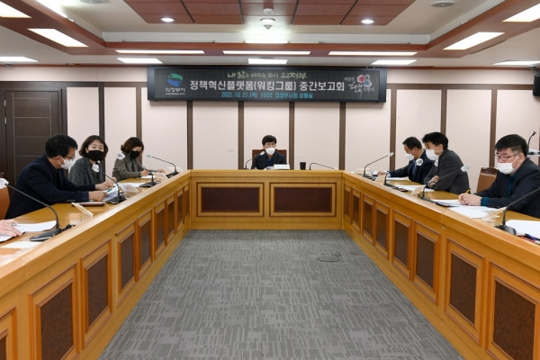[금요저널] 의정부시는 27일 정책혁신플랫폼 중간보고회를 개최하고 현재 운영 중인 워킹그룹들의 진행사항을 점검했다.