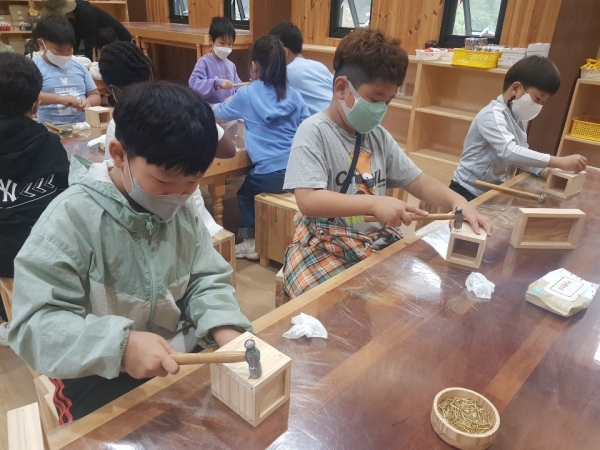 또한 숲체험과 더불어 숲에서 쉽게 구할 수 있는 폐목재를 활용, 나무에 그림을 그리고 구멍을 뚫어 장난감을 만들 수 있는 목공체험도 함께 실시했다으로써 아이들이 나무를 직접 만져보는 과정을 통해 산림자원의 중요성 인식 및 탄소중립 실천에도 기여할 수 있는 산 교육의 장이 되고 있으며 9월말 현재까지 총 1,812명이 체험에 참여했다.