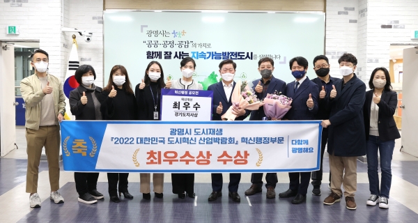 [금요저널] 광명시는 지난 10월 25부터 28일까지 용인시 종합체육관에서 열린 ‘2022년 대한민국 도시혁신 산업박람회’에서 ‘혁신행정분야 최우수상’을 수상했다고 28일 밝혔다.