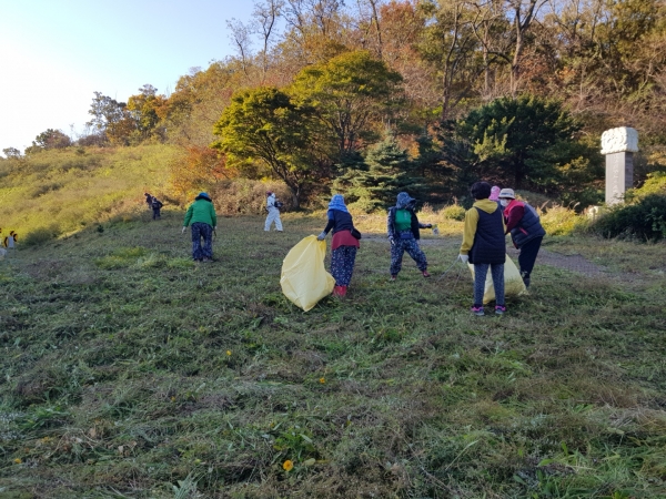 회원들은 이른 아침부터 잡초를 제거하고 쉼터 내 잡관목과 넝쿨을 정리하며 구슬땀을 흘렸다.