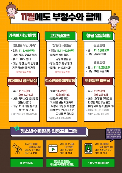 부평구 청소년수련관, 11월 청소년 프로그램 운영