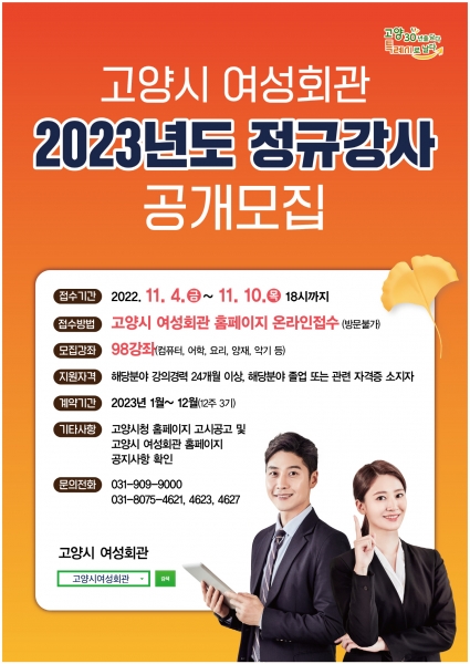 고양특례시 여성회관, 2023년도 정규강사 공개모집