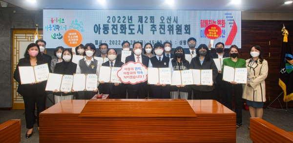 [금요저널] 오산시는 지난 28일 시청 상황실에서 아동의 권리가 실현되는 아동친화도시를 만들기 위해 제3대 아동친화도시 추진위원회 위촉식과 첫회의를 개최했다.