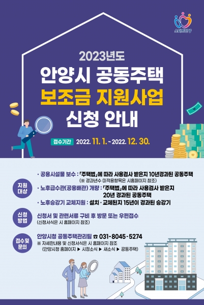 [금요저널] 안양시가 안전하고 쾌적한 주거환경 개선을 위해 2023년도 공동주택 보조금 신청을 11월 1일부터 12월 30일까지 받는다.