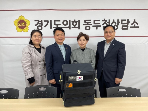[금요저널] 경기도의회 이인규의원은 31일 도의회 동두천상담소에서 주식회사 필덤 김미경대표와 협력기관인 사)자연보호동두천시협의회 염윤섭회장, 박선영 사무국장과 함께 장애인용 특수제작 전용가방 지원사업 관련해 논의하는 자리를 가졌다.