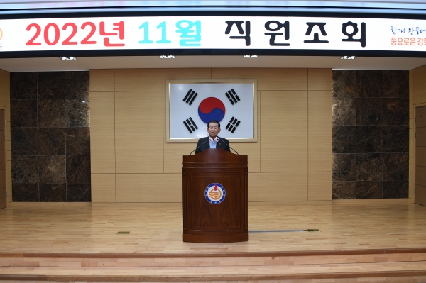 유천호 군수를 비롯한 전 직원은 이태원 참사를 애도하기 위해 검은 리본을 가슴에 달고 직원조회에 참석했다.