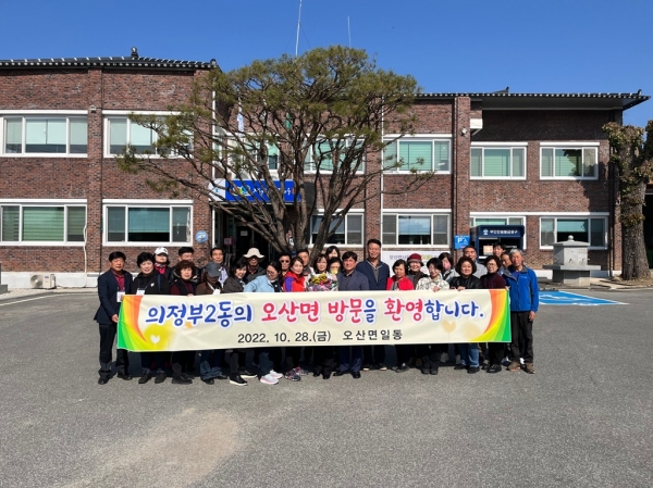 의정부2동과 오산면은 2011년 5월 자매결연을 체결한 후 2019년까지 활발히 상호교류를 해왔는데, 코로나19로 인해 중단됐다가 3여 년 만에 교류가 재개된 셈이다.