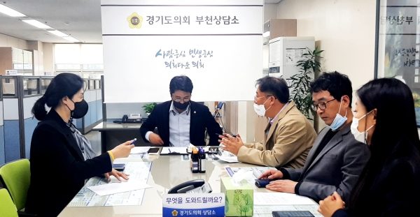 [금요저널] 경기도의회 이재영 의원은 31일 도의회 부천상담소에서 부천시 박찬희 시의원, 부천시소상공인연합회 신방식 회장과 임원들이 참석한 가운데 애로사항을 청취하는 시간을 가졌다.