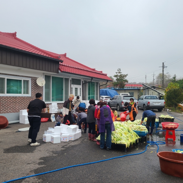 주민자치위원회에서 직접 재배한 배추로 위원 20여명과 면사무소 직원들이 함께 백김치를 담가 150상자를 관내 독거노인 등 취약계층에 전달했다.