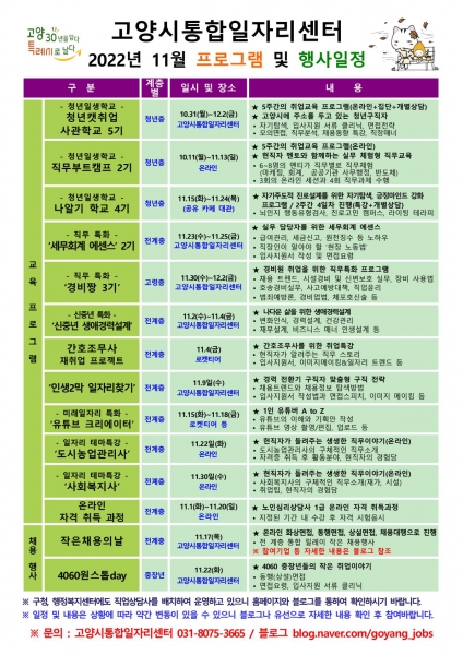 [금요저널] 고양특례시가 하반기 고양시민의 일자리 지원을 위해 다양한 취업 교육 프로그램을 11~12월에 집중 추진한다.