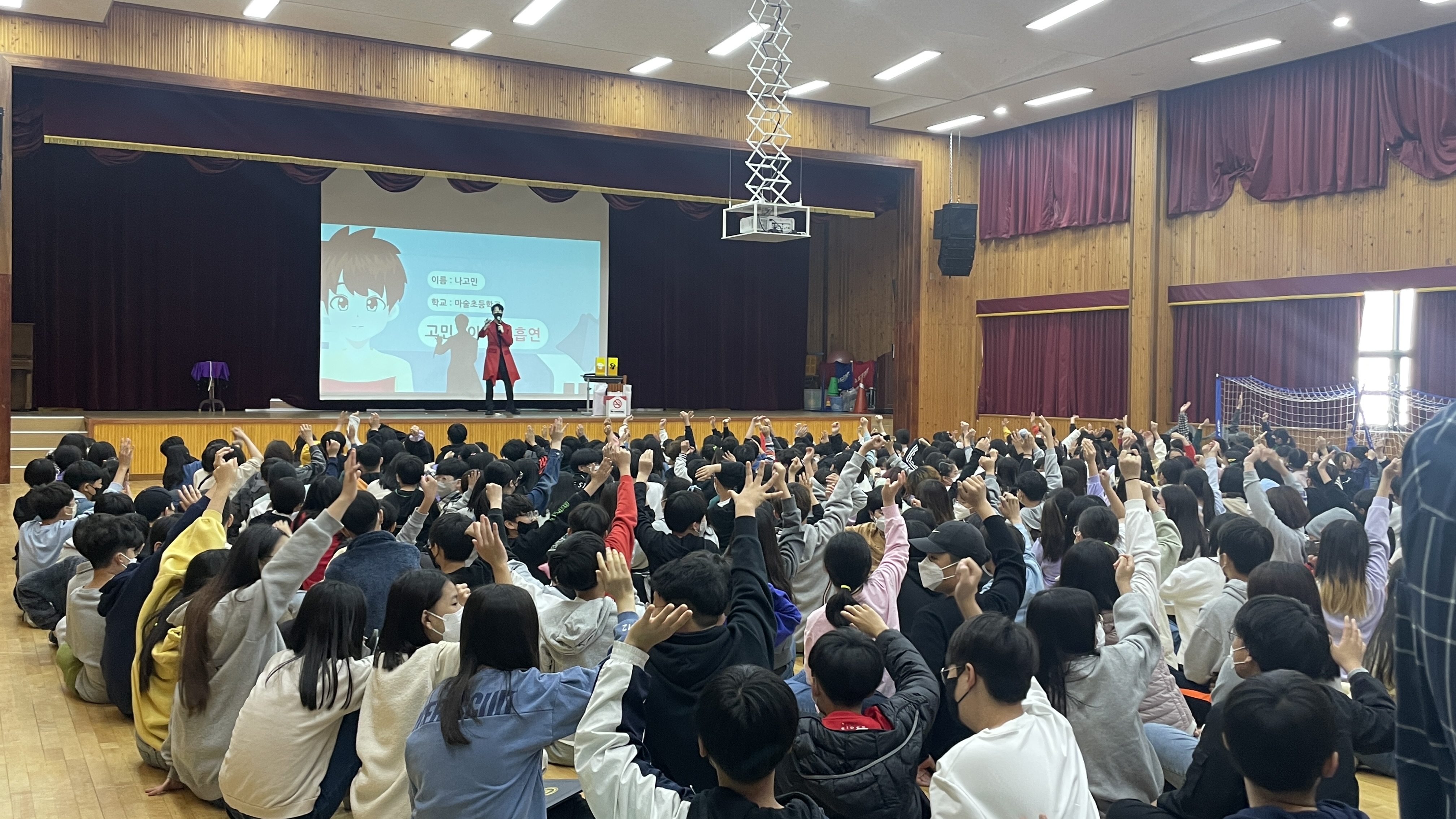 전교생 학생들을 대상으로 이루어진 이번 흡연예방교육은 마술 공연과 접목하여 흥미와 집중력을 높였고 생활 속에서 담배의 유해성을 인식하여 스스로 금연을 실천할 수 있는 의지를 다지도록 교육이 이루어졌다.