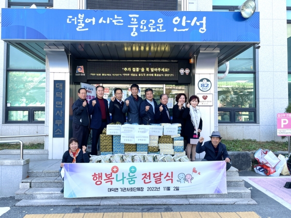 [금요저널] 안성시 대덕면 주민자치회와 기관사회단체장은 지난 2일 100만원 상당의 쌀 및 생필품을 대덕면사무소에 기부했다.