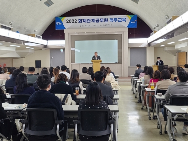 [금요저널] 파주시는 3일 홍원연수원에서 회계관계공무원 등 약 90여명을 대상으로 2022 회계관계공무원 직무교육을 실시했다.