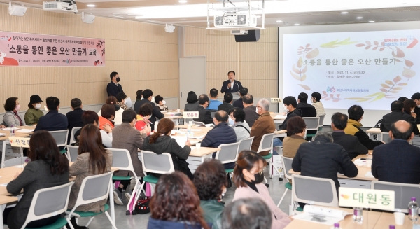 이날 교육은 ‘소통이 잘 되는 회의’와 ‘소통을 통한 좋은 오산 만들기’를 주제로 동 지역사회보장협의체 위원, 동장, 찾아가는 보건복지서비스팀장, 담당공무원이 참석한 가운데 복지 사각지대 발굴 및 동 마을복지 계획 추진에 애쓰고 있는 위원들의 지속적인 참여를 도모하고 효율적인 활동을 돕고자 마련했다.