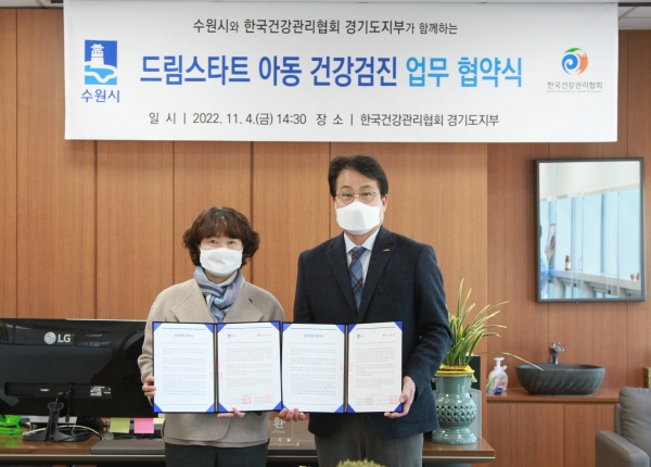 [금요저널] 수원시와 한국건강관리협회 경기도지부가 ‘2022년 드림스타트 아동 건강검진 지원 협약’을 체결하고 드림스타트 아동을 대상으로 건강검진 지원을 협력하기로 했다.