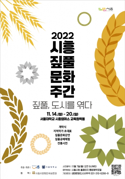 [금요저널] 시흥시가 농경문화를 바탕으로 과거·현재·미래를 연결하는 도시문화 브랜드 구축을 위한 ‘2022 시흥짚풀문화주간’을 오는 14일부터 일주일간 서울대학교 시흥캠퍼스 교육협력동 일대에서 운영한다고 7일 밝혔다.