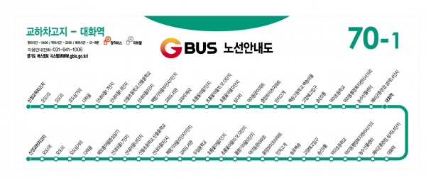 이번에 개통하는 70-1번의 경우 1일 5대 35회가 운행되며 주요 경유지로는 해오름마을중심상가 산내마을1,2,3,6,7단지 책향기마을 10,11단지 교하도서관 교하우체국 초롱꽃마을 6,7,10,12,13단지 삽다리~덕이동 대화역 등이다.