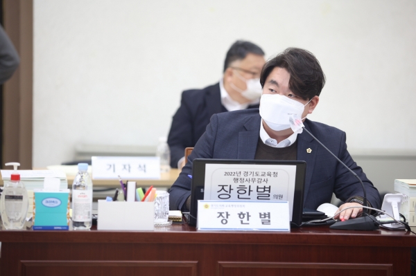 [금요저널] 경기도의회 교육행정위원회 장한별 의원은 7일 경기도교육청 안양·과천, 군포·의왕교육지원청에 대한 2022년도 행정사무감사 제1분반 활동에서 교육지원청별로 제각각인 공무원 인사규정에 대해 지적하고 이로 인한 불공평한 인사 문제가 발생하지 않도록 규정 정비에 나서줄 것을 촉구했다.
